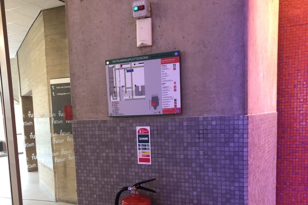 De verschillende locaties van de Technische Universiteit Delft voldoen aan alle criteria waarop een brandmeldinstallatie een verplichting is en daarom moeten op elke locatie van de TU Delft deze ontruimingsplattegronden aanwezig zijn.